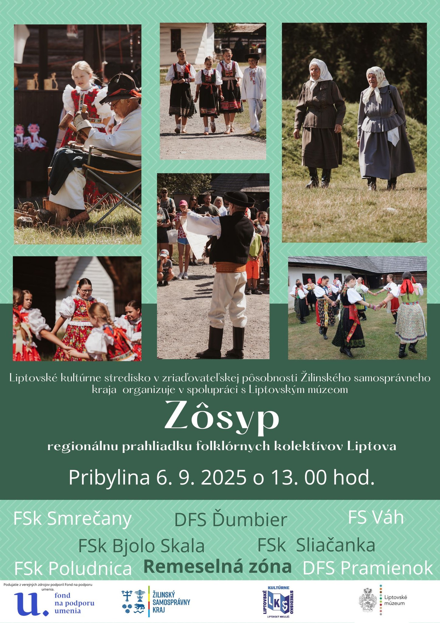 Prostredníctvom nášho programu vás pozývame nazrieť do tradičnej kultúry liptovského regiónu prostredníctvom folklórnych kolektívov Liptova. Účinkujú: FSk Smrečany, FSk Poludnica, FSk Sliačanka, FSk Bjolo skala, Folklórny súbor VÁH Liptovský Mikuláš, DFS Pramienok a DFS Ďumbier.